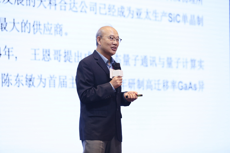 随后,王恩哥结合近年工作经历,对材料实验室创新团队及重要成果进行了详细介绍。陈小龙课题组研发的碳化硅单晶,已经实现产业化并成为第三代半导体龙头公司,实现6英寸单晶碳化硅量产。“这是了不起的事情,我们可以很自豪地说,基本解决了中国第三代半导体单晶材料‘卡脖子’问题。”