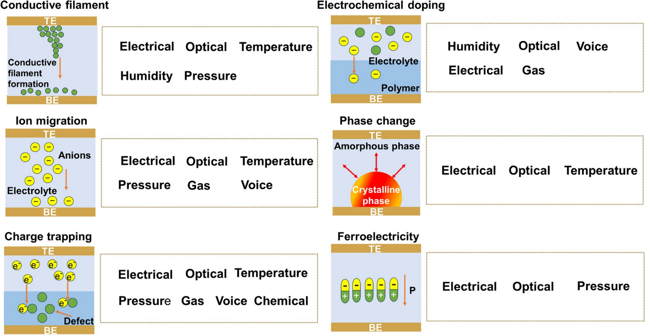 图2. 神经形态装置对多模态输入刺激的物理机制映射