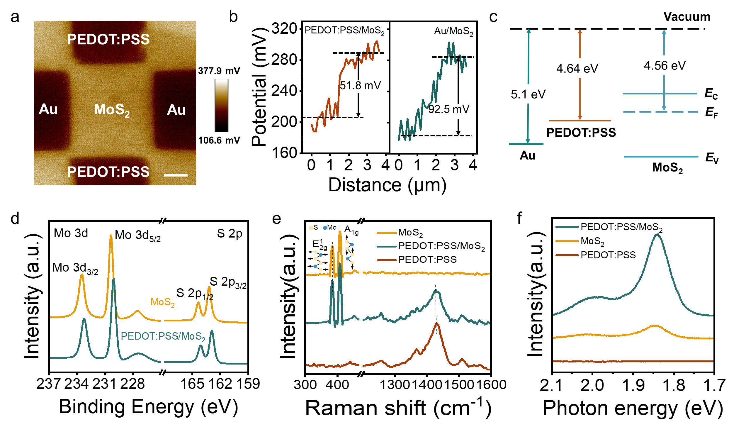 图3. PEDOT:PSS电极与MoS2接触特性的多维度表征